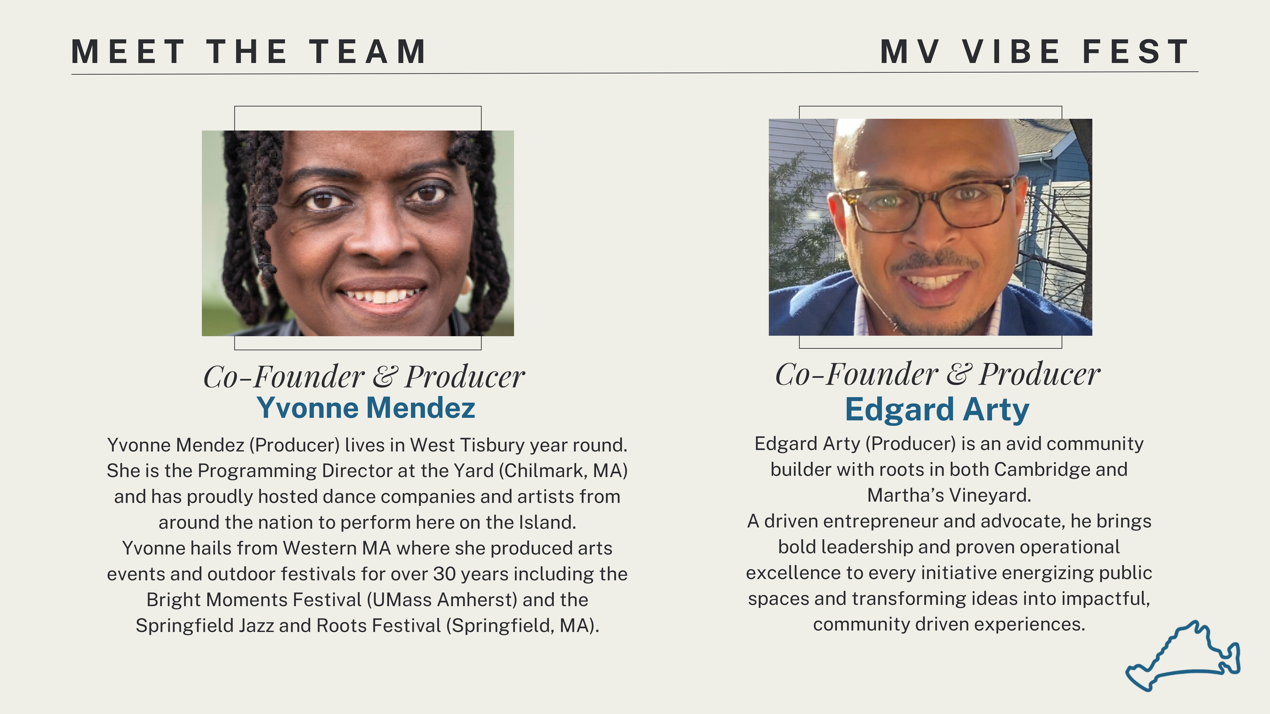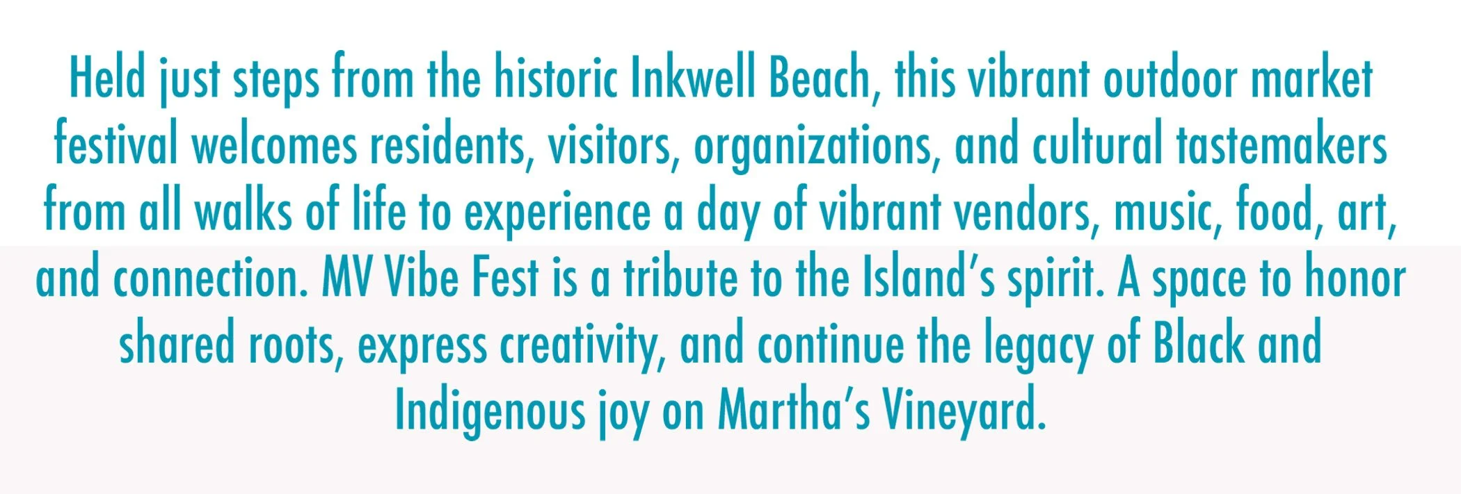Saturday, August 9 • 11 am - 6 pm Thanks to all our sponsors, vendors, artists, staff and everyone who came out to make this inaugural event a great success! Unity and Community! This is Martha’s Vineyard. VENDORS INTERESTED IN THE 2026 VIBE FEST, EMAIL US! MVVIBEFEST@GMAIL.COMWE ARE NO LONGER ACCEPTING VENDORS FOR 2025. Food vendor deadline WAS July 24th. All other vendors : August 1st. MEET OUR 2025 SPONSORS Vendor Sign Up → VibeFest Overview → THANK YOU TO OUR SPONSORS! CONTACT US!MVVIBEFEST@GMAIL.COM • phone 413-218-1353 or 617-388-7883